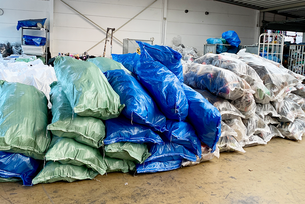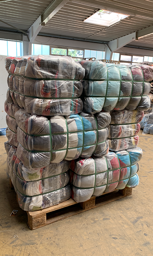 Die sortierten Textilien werden sicher verpackt und auf Paletten bereit gestellt. Dann beginnt die Reise der Textilien zu Orten, an denen Menschen diese Kleidung benötigen.